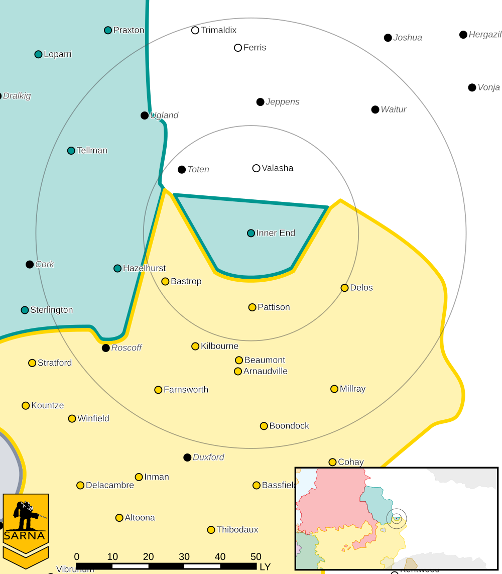 Originally given to the Federated Suns by the Outworlds Alliance as part of the Tancredi Accord in exchange for military aid during the Reunification Wars. Clan Snow Raven conquered Inner End, along with Haynesville and Diboll, in 3144.